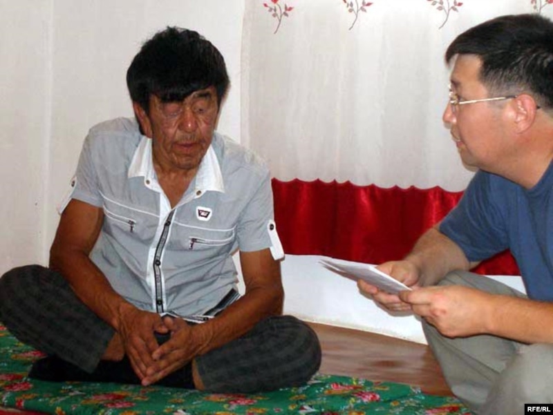 Нуржан беседует с репортером радио Азаттык. Cело Мукур Кызылкогинского района Атырауской области. 17 июля 2009 года.