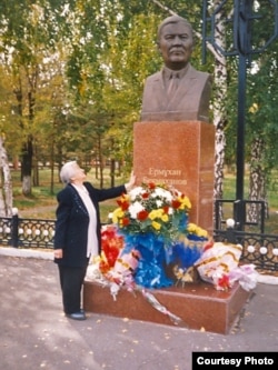 На кладбище в Алматы, где похоронен казахский ученый Ермухан Бекмаханов. Супруга Халима и внук Ануар.