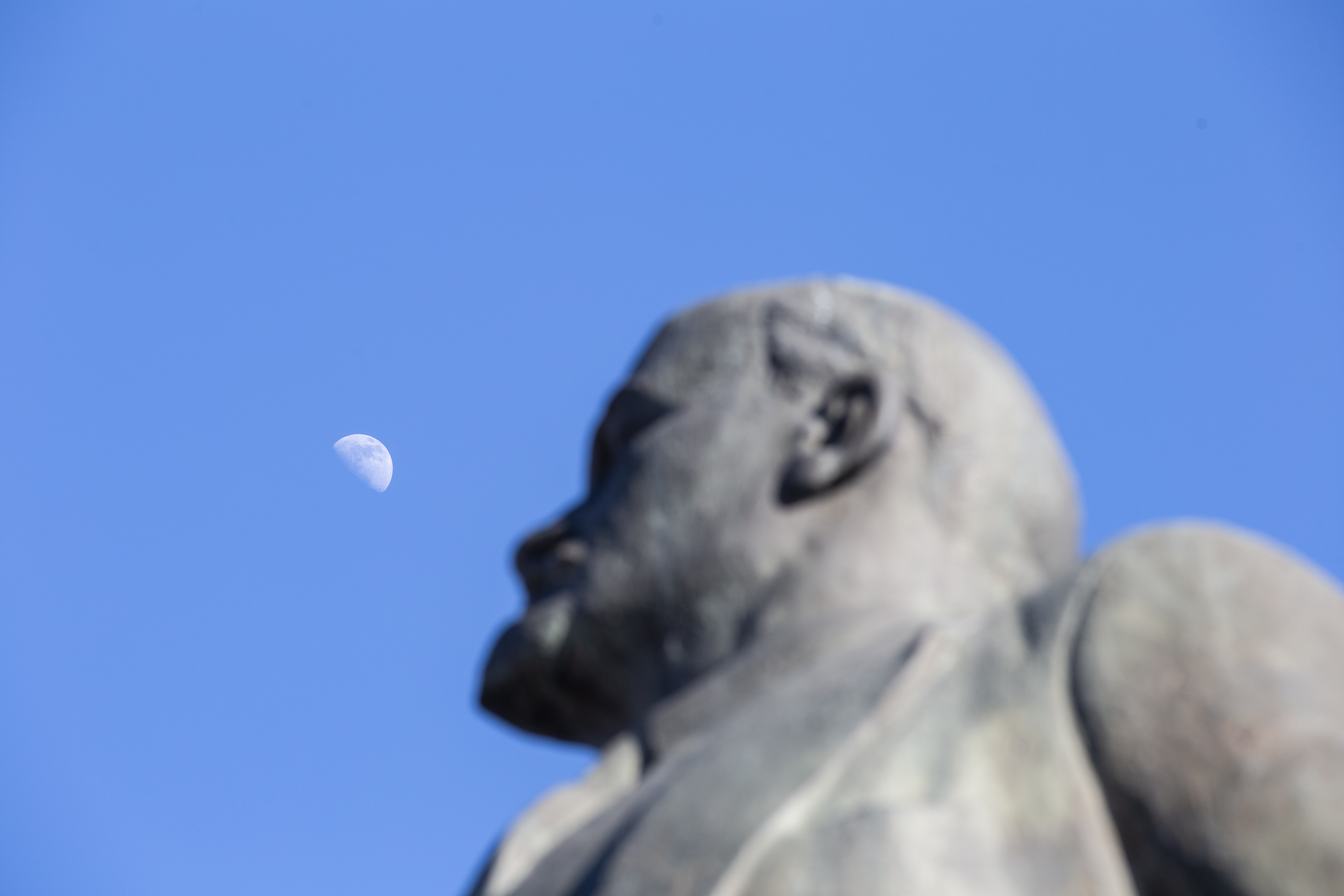 Луна и памятник Ленину в Байконуре, Казахстан, 15 марта 2019 года.