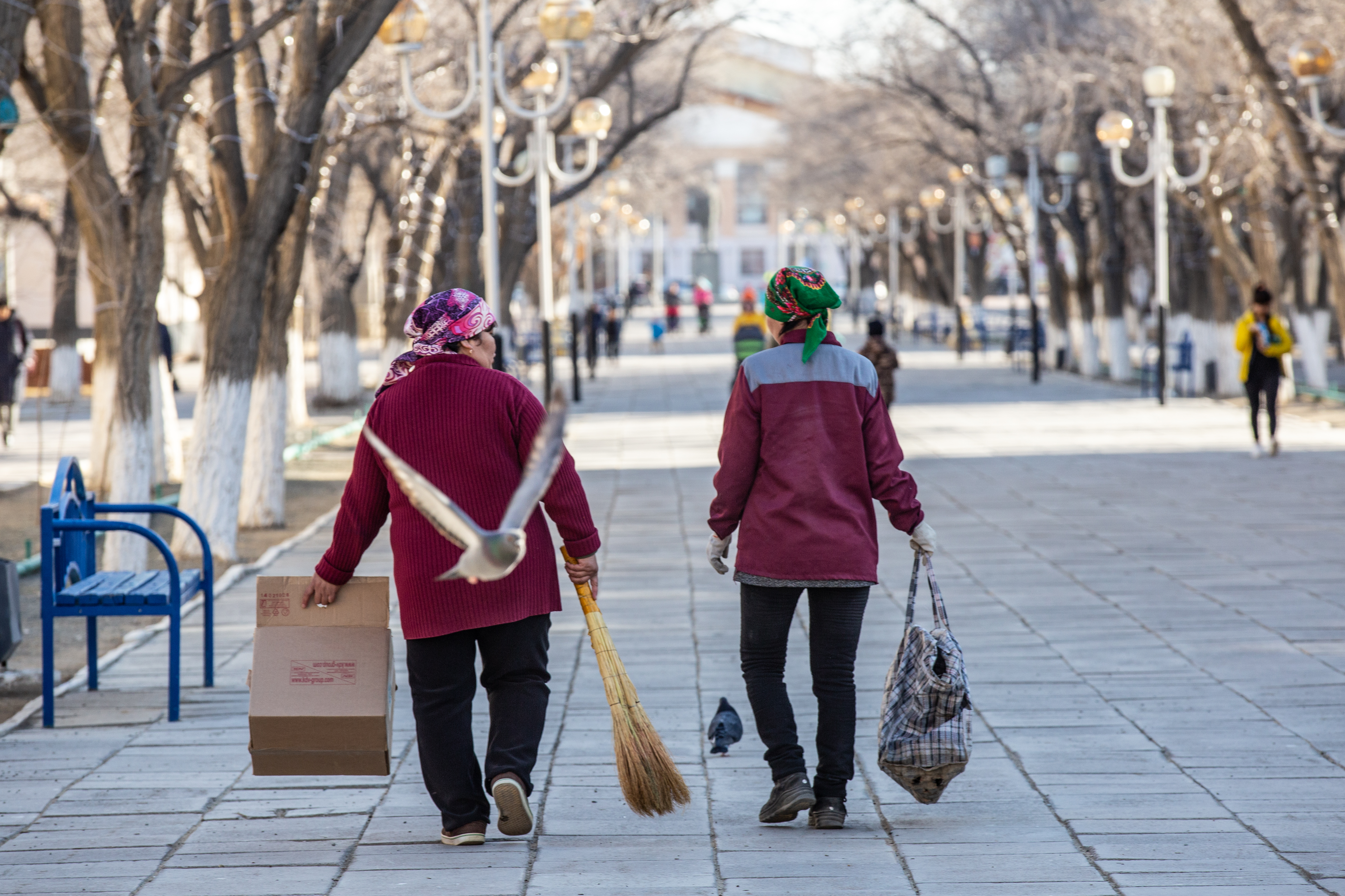 Уборщицы на улицах Байконура, 15 марта 2019 года.